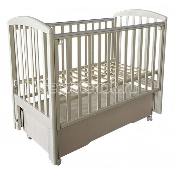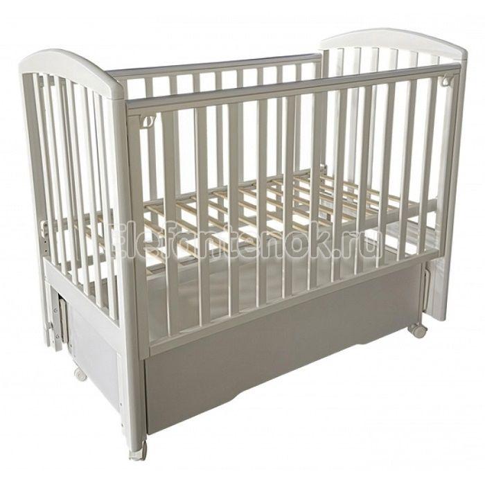 Классическая деревянная детская кроватка Антел Алита 4-6 оснащена вместительным ящиком, а также универсальным маятником, который позволяет укачивать новорожденного в поперечном или продольном направлениях. Подросший ребенок самостоятельно сможет залезать и вылезать из кроватки: для этого необходимо вынуть три центральные рейки. Приятным дополнением является наличие на боковинах силиконовых накладок: они не только защитят от ушибов, но и помогут ребенку в период прорезывания зубов.