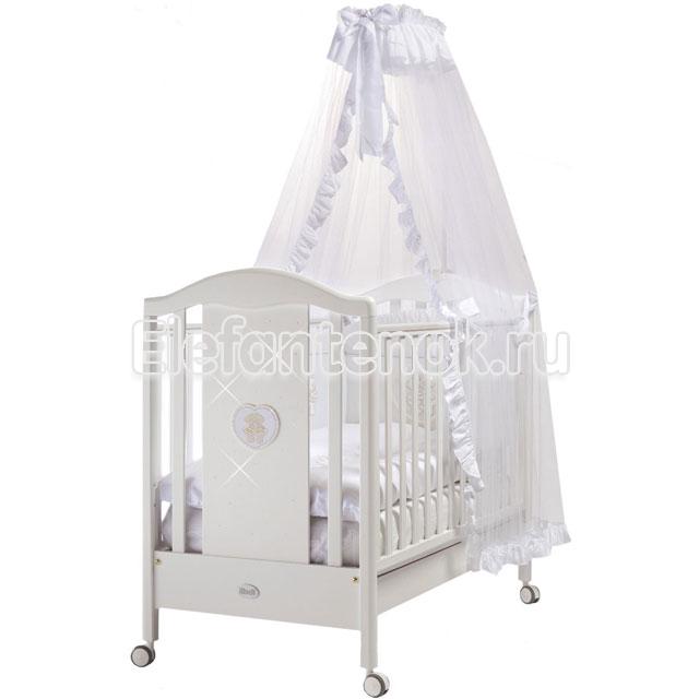 Кроватка Erbesi Bubu проста, элегантна и изящна. Она станет украшением детской комнаты. Сама же кроватка украшена очень красивым ленточным декором и мишкой.