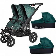 TFK Twin Trail 2 в 1 - премиальная коляска для двойни, которую отличает высокая проходимость за счет надувных колес, сильная черная рама с элементами из карбона и дополнительный ручной тормоз. В комплект входят две уютные люльки и два прогулочных сиденья с раздвижными капюшонами и очень длинным спальным местом – 106 см.
