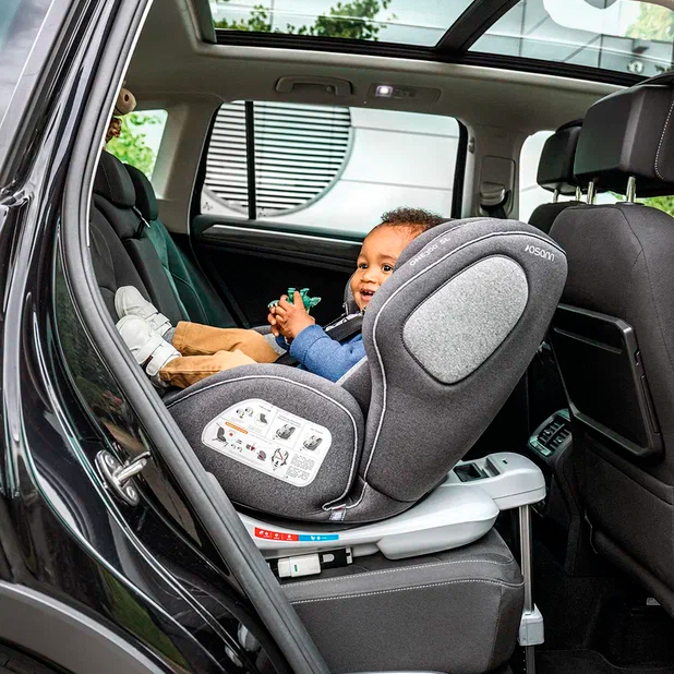 Вращающаяся на 360° встроенная база упрощает размещение и пристегивание ребенка. Благодаря удобной поворотной системе автокресло легко установить по ходу и против хода движения, не снимая его с креплений.