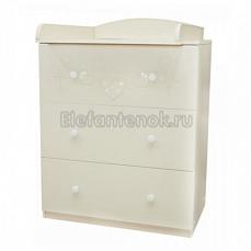 Комод с пеленальной поверхностью Островок Уюта Бантики хорошо впишется в интерьер детской комнаты. Комод имеет классичесую форму без излишеств. Простота формы дополнена изысканной резьбой в виде бантиков и сердечек, украшенной стразами.