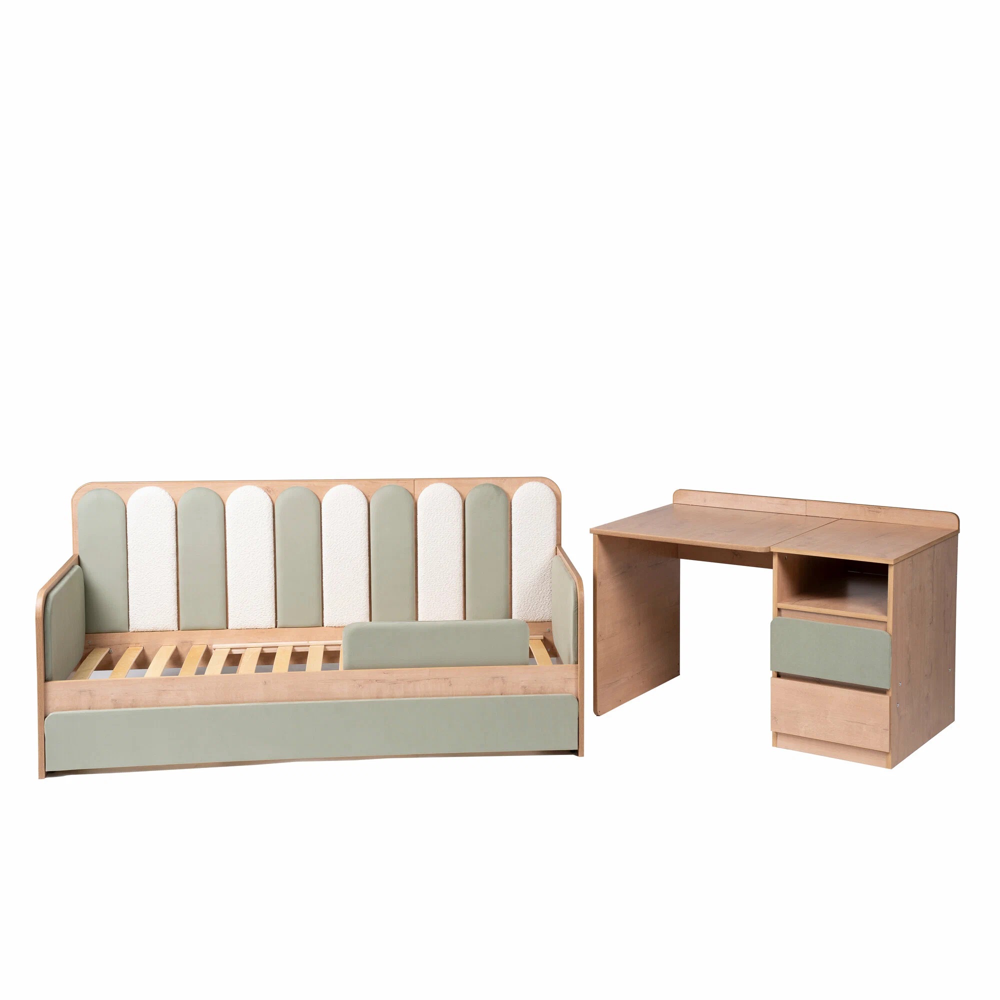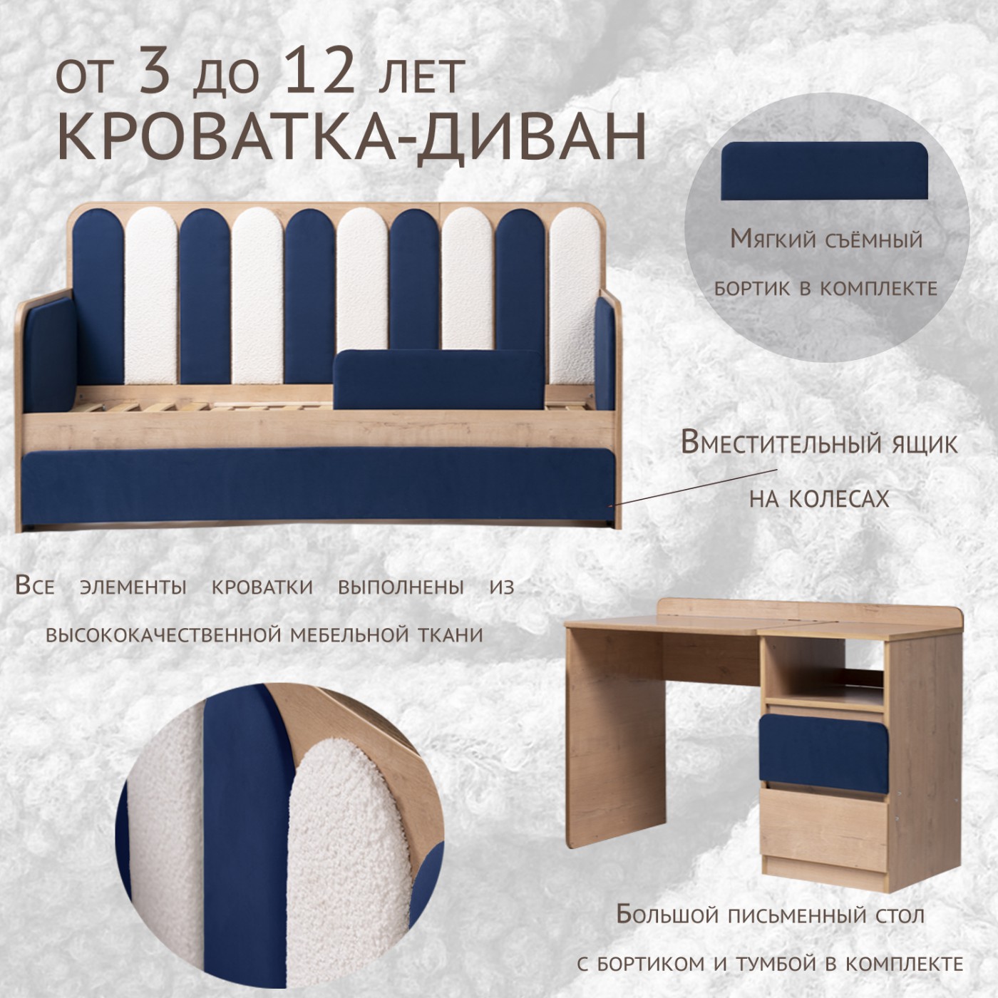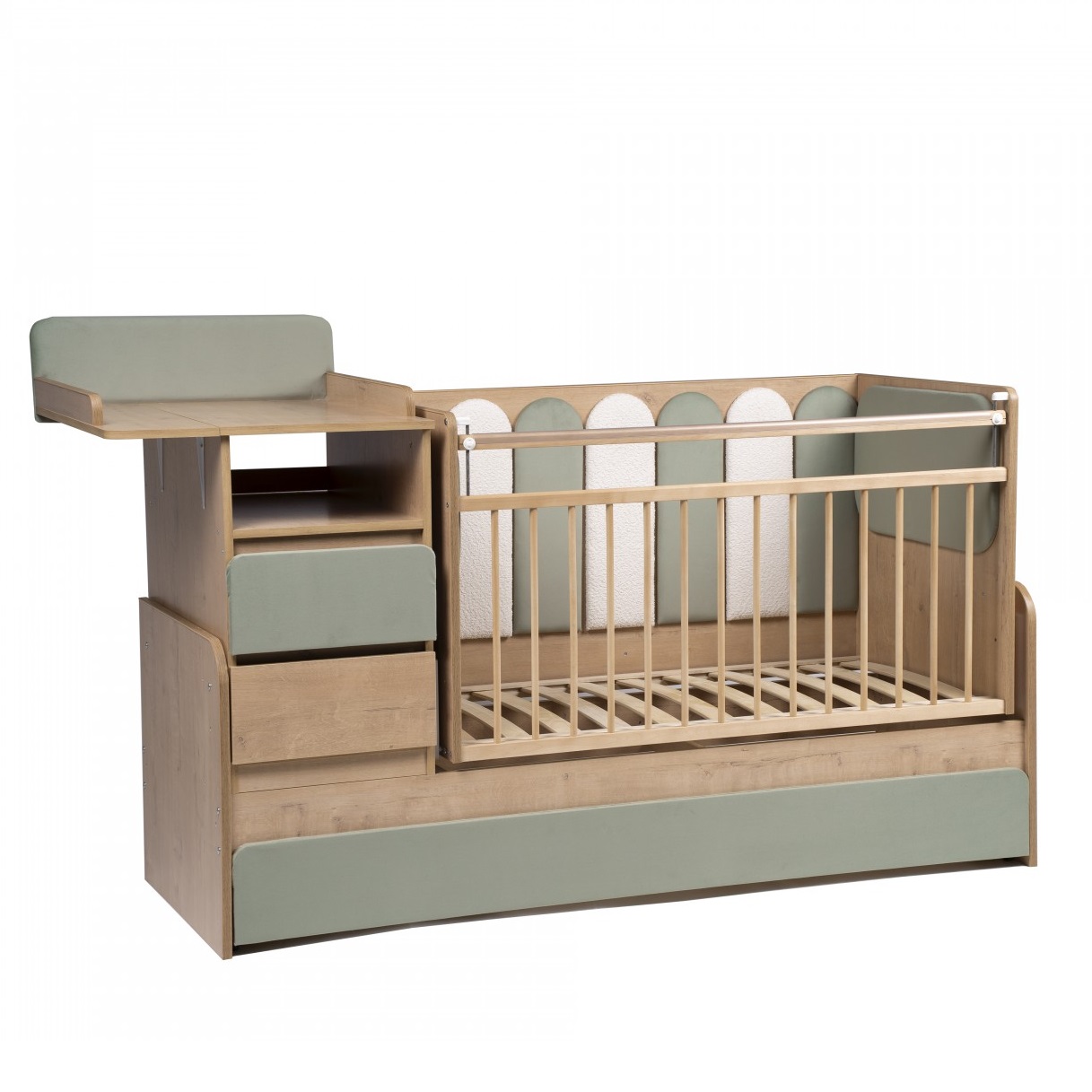 Детская кровать-трансформер Островок уюта Дивания подарит заботу малышу до 3 лет и комфорт для ребенка-подростка до 15 лет. Прекрасным дополнением кроватки являются мягкие вставки велюра, букле или рогожки, они износостойки и тактильно-приятны. Тумбочка может быть установлена с любой стороны, организует систему хранения для детских принадлежностей, нижний ящик подходит для белья и детский вещей. После трансформации Вы получите кроватку 170*60 см и отдельную тумбочку.