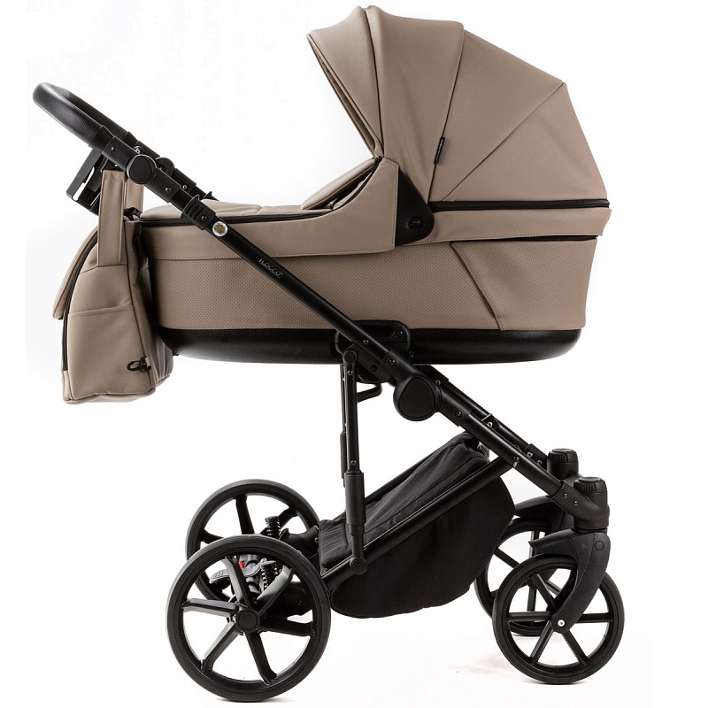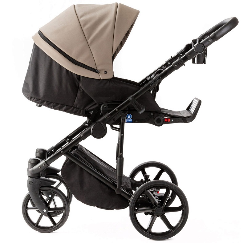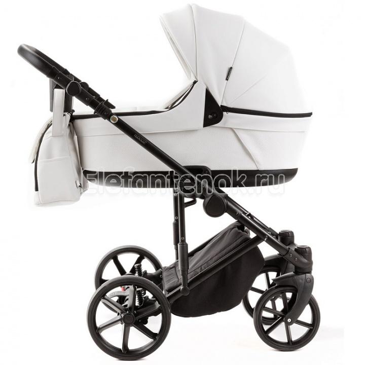 Adamex Luciano Ecco 3 в 1 - роскошная коляска премиум класса в обивке из первоклассной eco кожи, в комплекте с люлькой, прогулочным блоком, автокреслом и полным комплектом фирменных аксессуаров. Коляску отличает мягкость езды за счет дополнительной амортизации шасси.