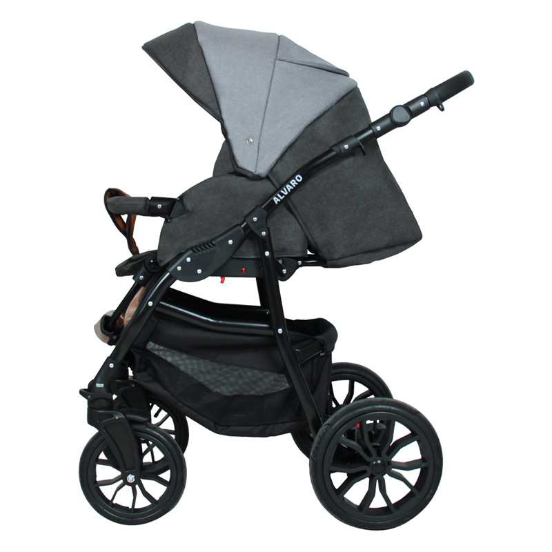 Alis Alvaro F - недорогая модульная коляска 3 в 1 на мягких надувных колесах, выполненная в комбинированном материале (ткань+кожа), имеет множество индивидуальных регулировок, делающих коляску удобной в использовании. В комплект входят люлька для новорожденного, прогулочный блок для ребенка от 6 месяцев, автокресло 0+ и полезные аксессуары.