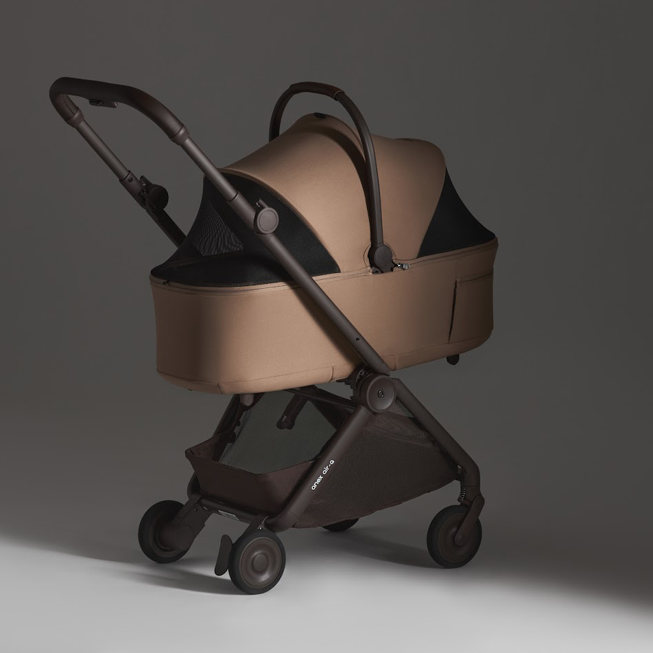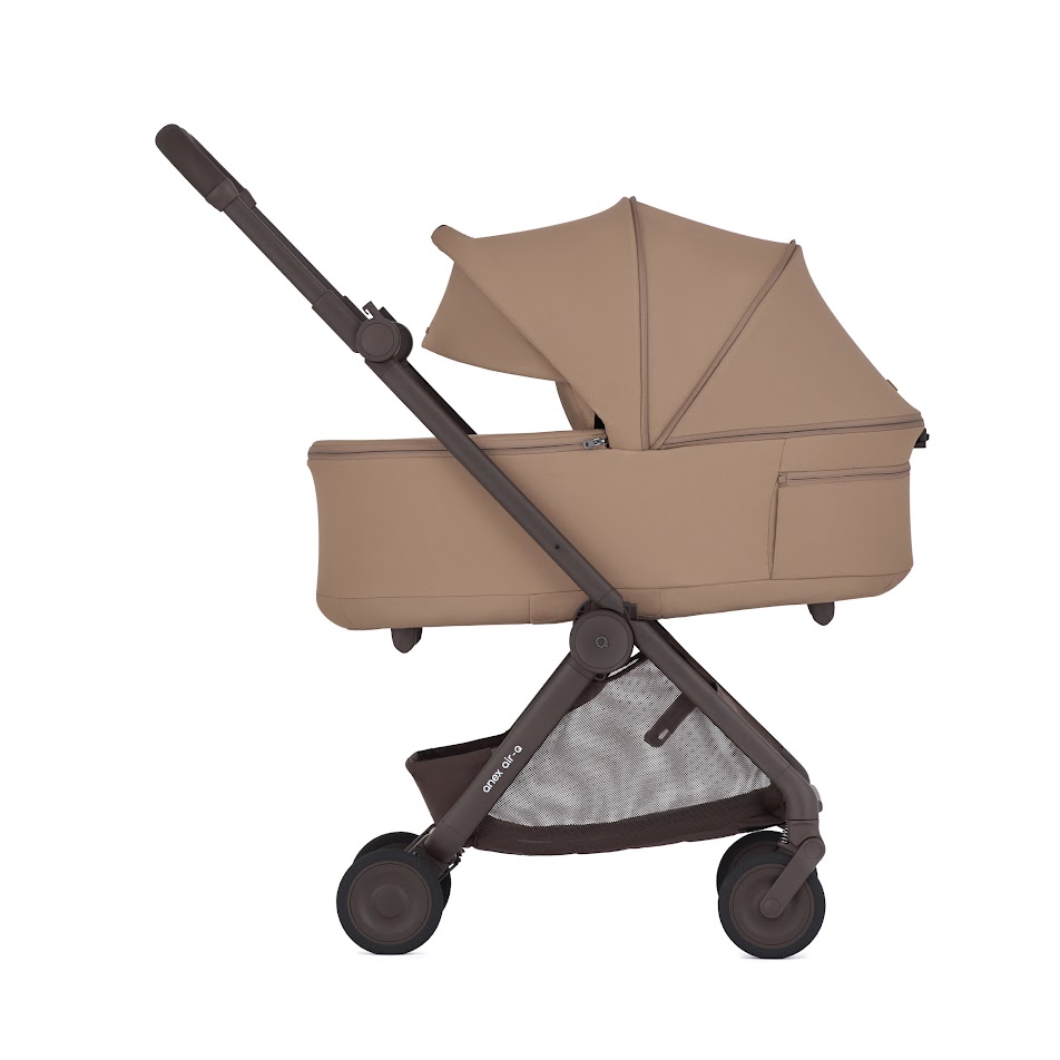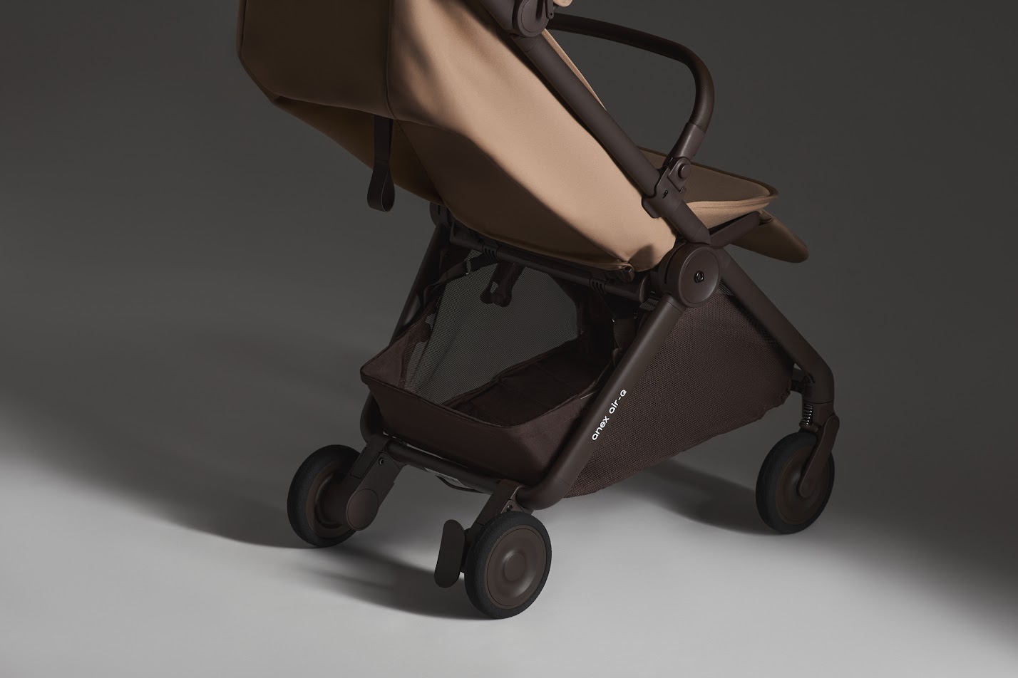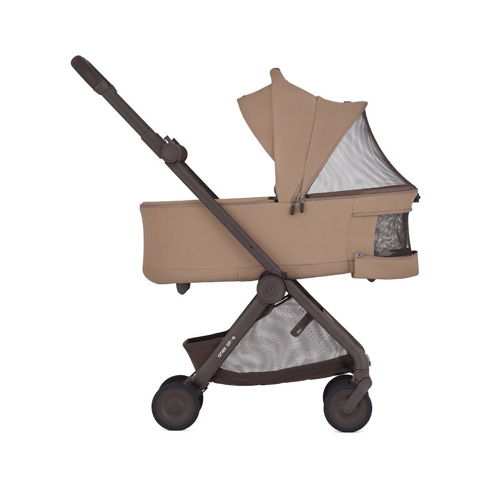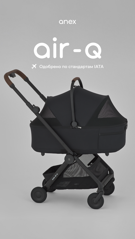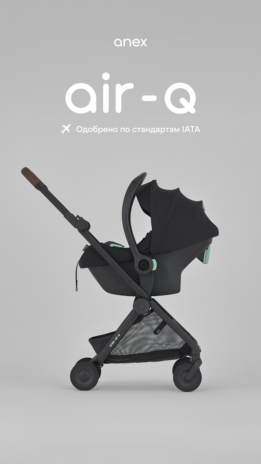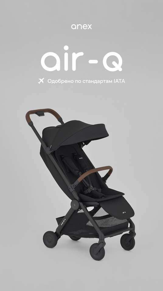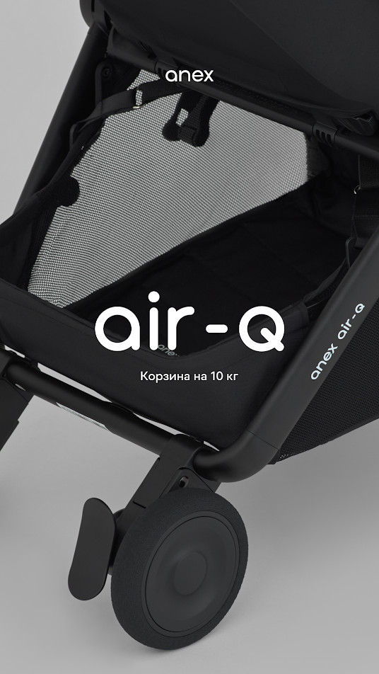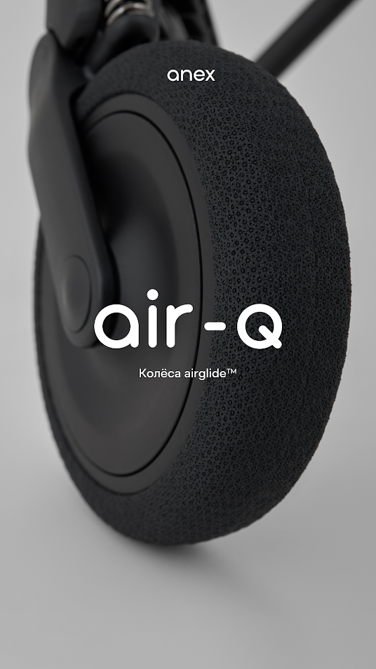 Anex Air-Q - лёгкая прогулочная коляска с компактным складыванием одной рукой и вертикальным положением в сложенном виде, оснащённая колёсами airglide ETPU с пружинной амортизацией на всех колёсах для плавного хода на любом покрытии.
