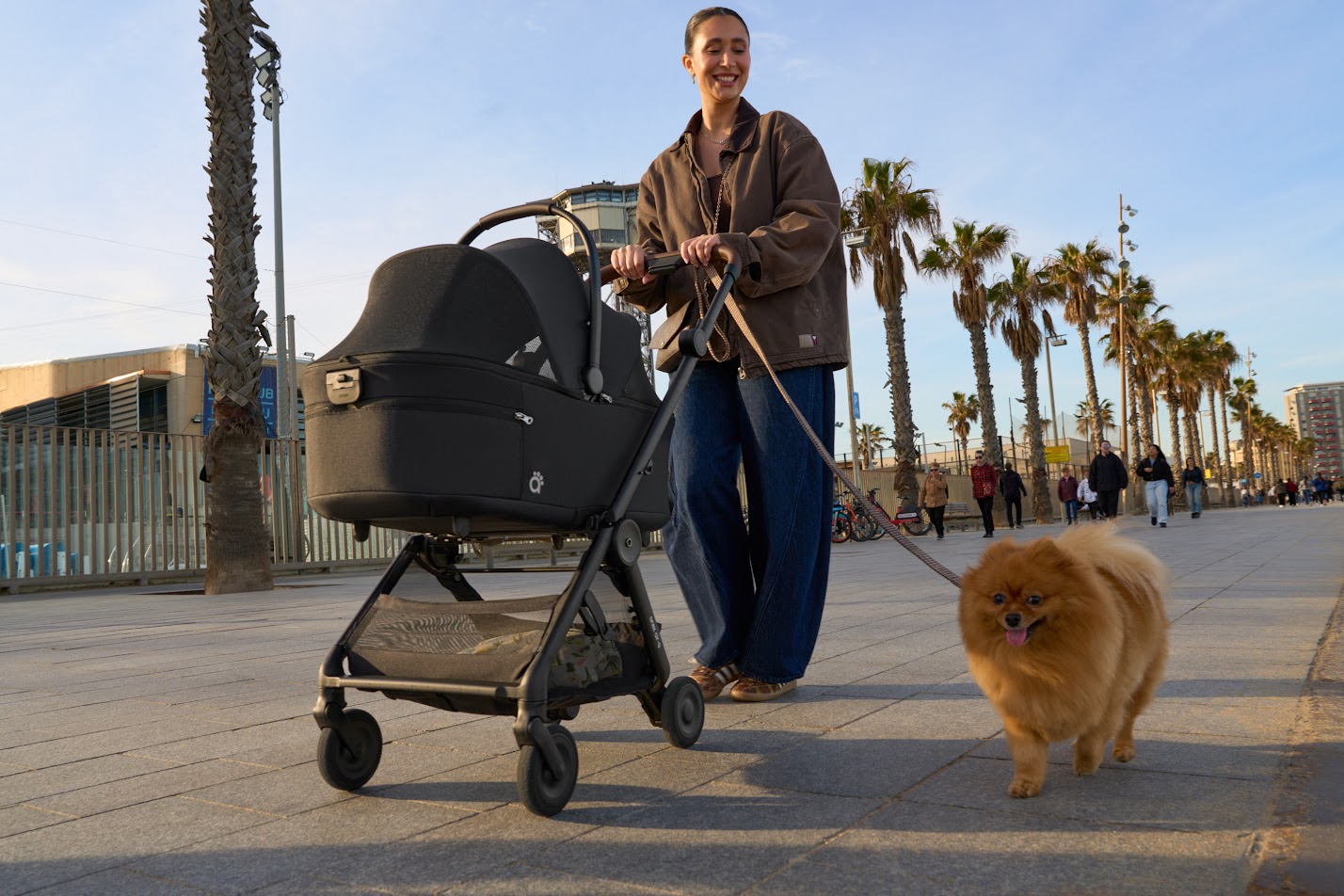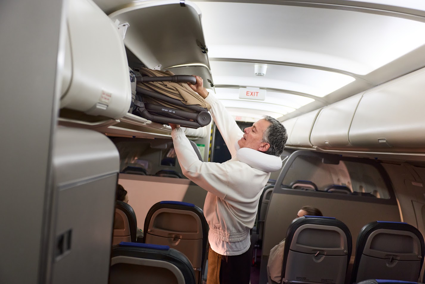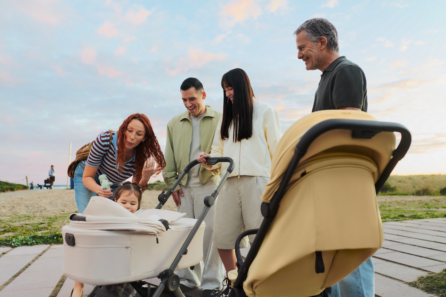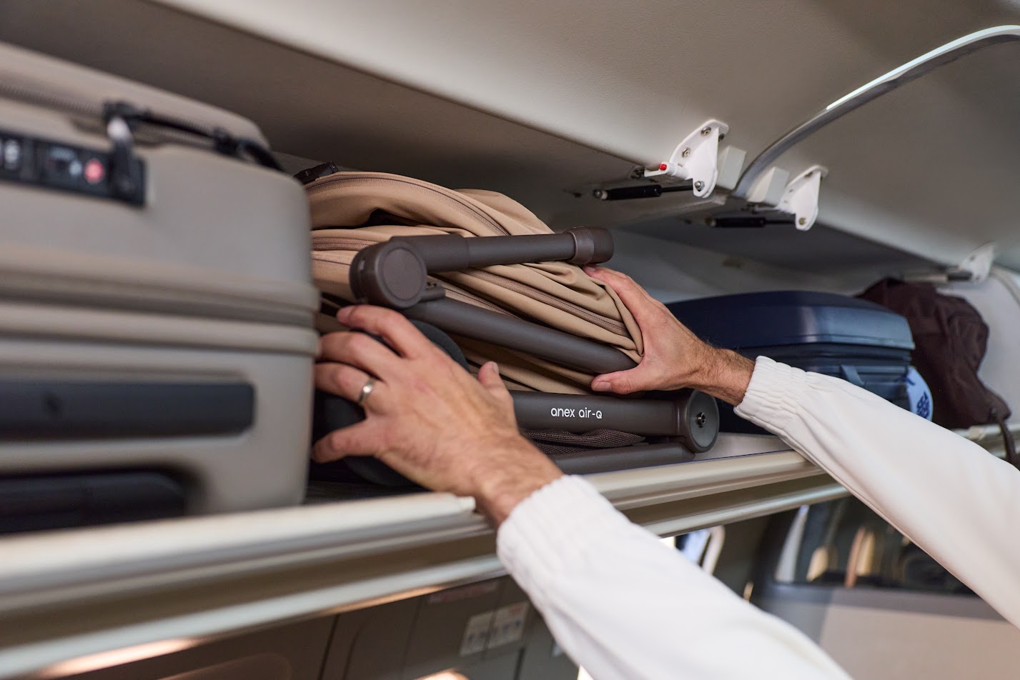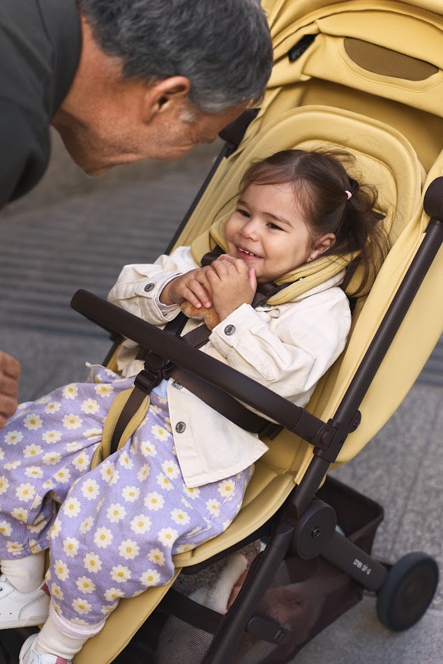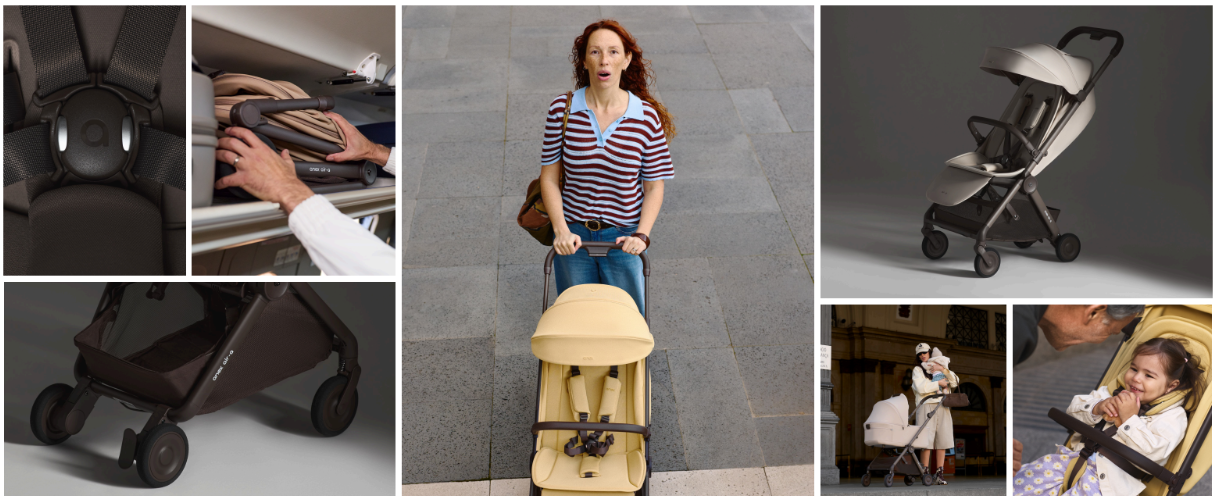 Anex Air-Q - лёгкая прогулочная коляска с компактным складыванием одной рукой и вертикальным положением в сложенном виде, оснащённая колёсами airglide ETPU с пружинной амортизацией на всех колёсах для плавного хода на любом покрытии.