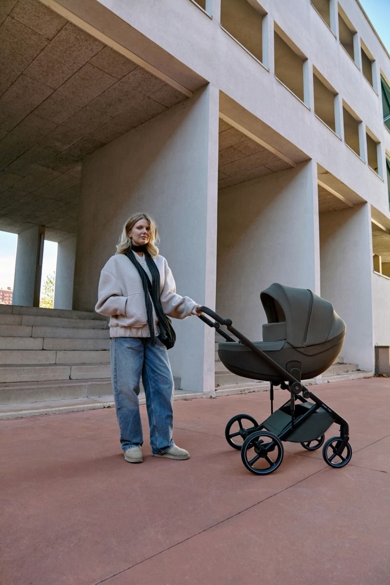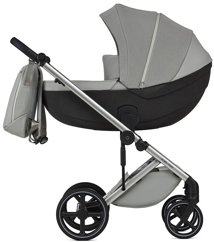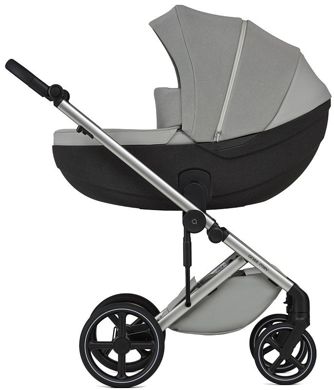 Anex Mev - лёгкая и манёвренная коляска с минималистичным дизайном, тройной амортизацией и вращающимися на 360° передними колёсами, включающая просторную люльку с бамбуковой тканью и матрасом Sorona ( с антибактериальными свойствами), реверсивное прогулочное сиденье, с регулируемой спинкой и подножкой, систему вентиляции, защиту от УФЛ 50+, вместительную корзину на 10 кг, адаптеры регулировки высоты для родителей любого роста и эргономичную тормозную систему Comfy Stop - всё это обеспечивает комфорт и безопасность малыша в любую погоду, а также удобство использования для родителей..