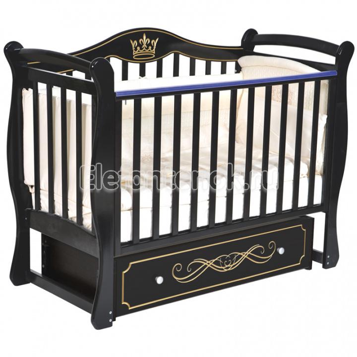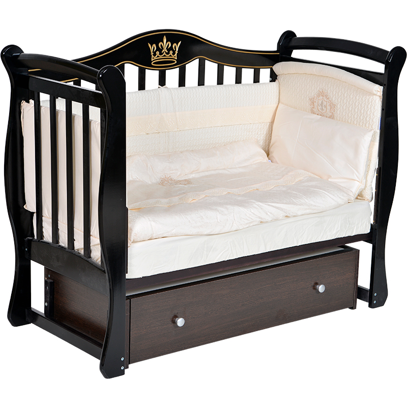 Привлекающая своим утонченным дизайном, необычайно уютная детская кроватка Антел Julia 111 имеет универсальный маятник, закрытый подкроватный ящик и фигурную заднюю стенку, декорированную резьбой в виде короны. Чтобы не наклоняться низко при укладывании и доставании из кроватки малыша, вы можете не только устанавливать дно в верхнем положении, но и опускать боковину. Закрытый подкроватный ящик защитит вещи и постельное белье от пыли. Приятным дополнением является наличие силиконовой накладки на боковине и съемных центральных реек.