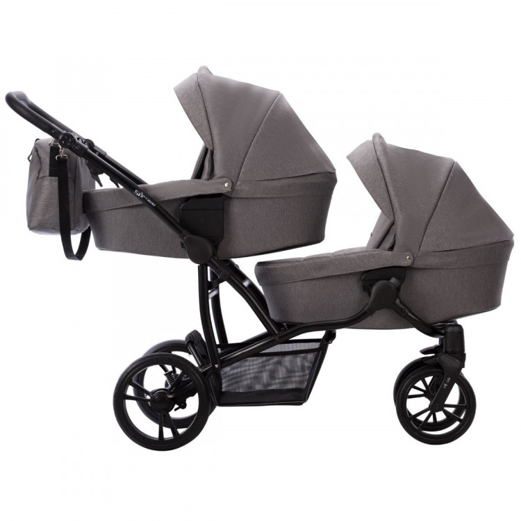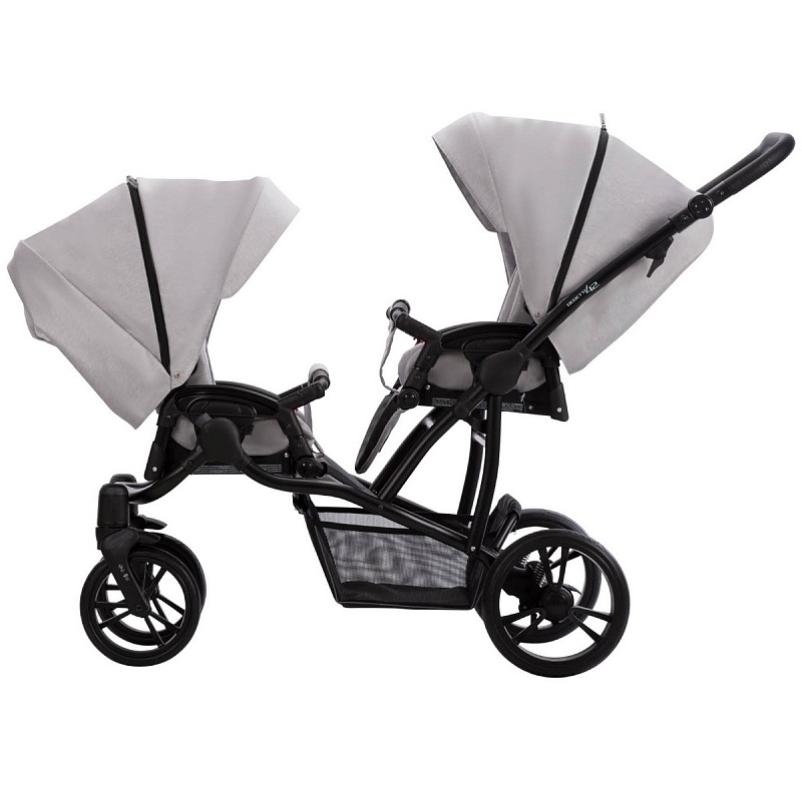 Коляска 2 в 1 для двойни Bebetto 42 – удобна в использовании благодаря регулируемой по высоте ручке, легкой алюминиевой раме, надувным колесам на дисках (передние вращающиеся), на шарикоподшипниках. Хорошо маневренная даже при двойной нагрузке, широкий спектр независимых регулировок спинки и подножки дает возможность найти наилучшие условия для перевозки каждого ребенка. Возможно размещение люлек и прогулочных блоков по направлению и против движения.