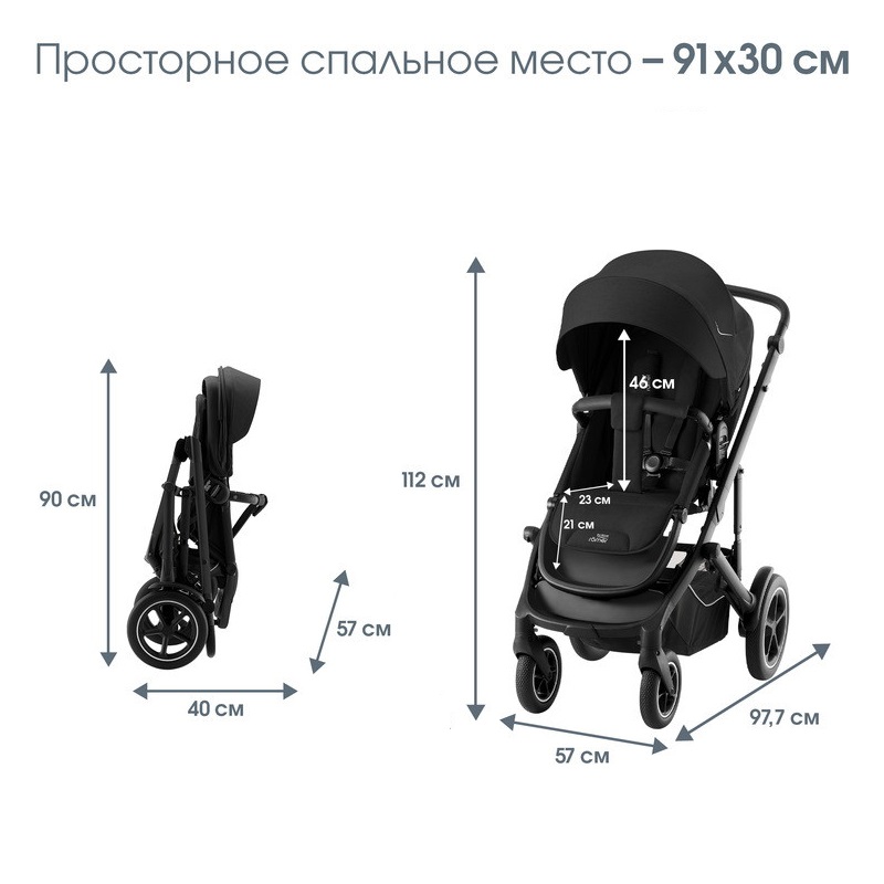 Обновленная модель всесезонной прогулочной коляски Britax Smile 5Z теперь имеет уменьшенную ширину шасси (всего 57 см) и очень большой капор UPF50+, наклоняющийся до ножек. Резиновые, наполненные гелием, колеса и дополнительная амортизация позволят с комфортом гулять даже по бездорожью.