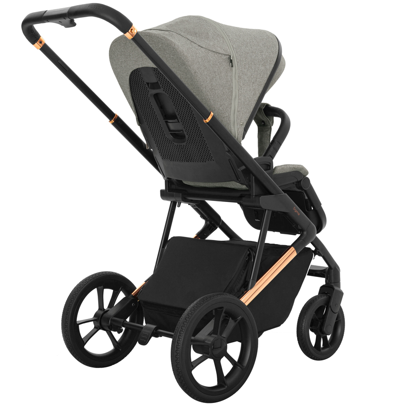- Адаптивная амортизация смягчает ход коляски и поглощает избыточную вибрацию.