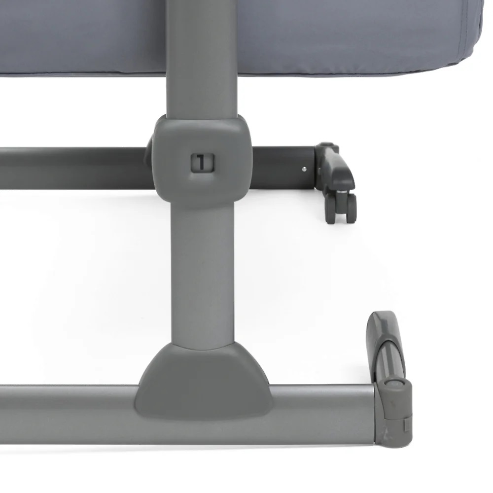 Боковой бортик Next2me Essential легко опускается для использовании в качестве приставной потянув две молнии вниз. Её можно использовать отдельно в гостиной, детской комнате, спальне. Кроватка мобильна, благодаря двум колесикам с тормозами. В комплект входит мягкий матрасик. Сетчатое отделение в боковой стенке обеспечивает поступление свежего воздуха, поддерживая идеальный микроклимат в колыбельке. С кроваткой Next2me Essential малыш всегда будет рядом без лишних хлопот. Складные ножки позволяют вплотную соединить колыбельку, даже при отсутствии проема внизу взрослой кровати.