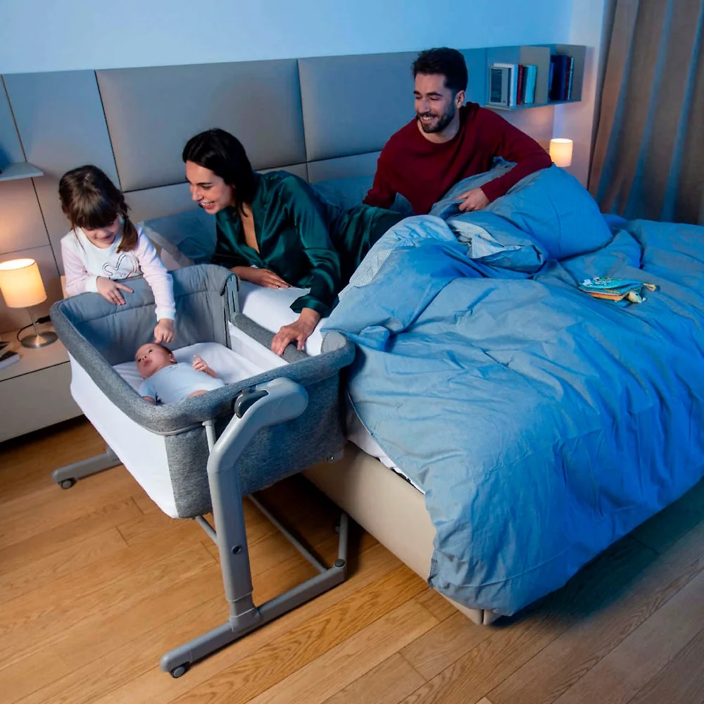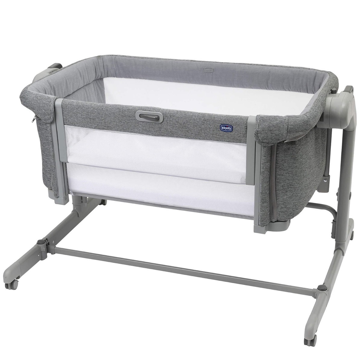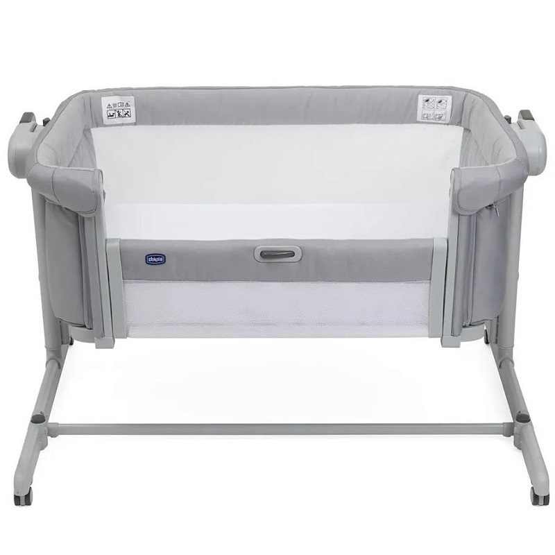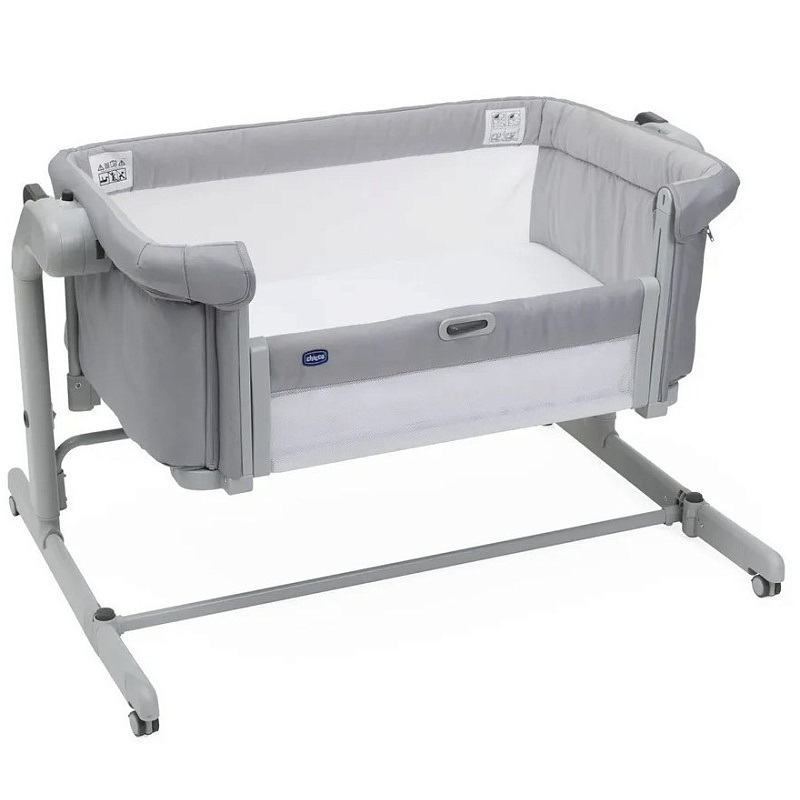 Chicco Next2Me Magic Evo - современная модель колыбельки, обладающая 11-ступенчатой регулировкой высоты, наклоном ложа, простым механизмом регулировки боковой стенки одной рукой, колеса для удобства передвижения и возможность ручного качания. Колыбельку можно использовать как приставную, закрепив её к родительской кровати. В комплектацию уже входит сумка-чехол, матрасик, а также крепления, фиксирующие приставную кровать ко взрослой.