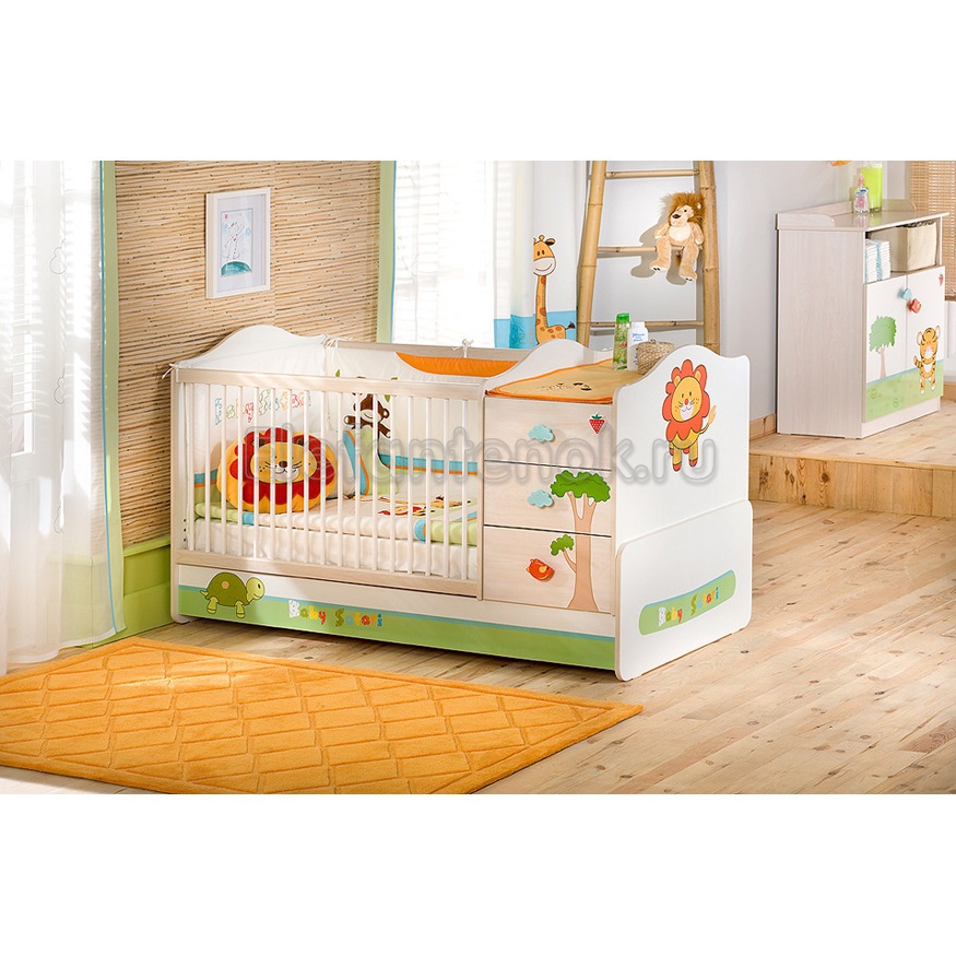 Ваш малыш быстро растёт, и уже прежние размеры кроватки его не устраивают? Не стоит отчаиваться. Турецкие разработчики создали кроватку-трансформер Cilek Baby Safari, которая растёт вместе с малышом. Для этого стоит только снять комод с ящиками и убрать перегородки, и кроватка увеличится в размерах.