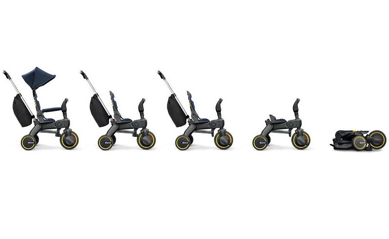 SimpleParenting Doona Liki Trike S3 - трёхколёсный складной велосипед-трансформер для детей от 10 месяцев до 3 лет с четырьмя режимами использования, пятиточечными ремнями безопасности, регулируемой спинкой и ручкой, который компактно складывается одним движением и помещается в рюкзак или в качестве ручной клади в самолёт.