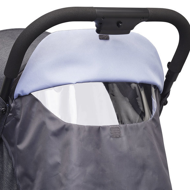 Для присмотра за малышом в капоре предусмотрено окошко с клапаном на липучке.
