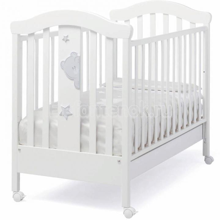 Красивая и уютная детская кроватка Erbesi Stellina декорирована медвежонком и звездочками, наполняющими комнату особым очарованием и нежностью. Реечное дно устанавливается в двух положениях по высоте и наряду с опускающейся боковиной облегчает укладывание и доставание из кроватки новорожденного. Приятным дополнением является наличие в комплекте подкроватного ящика для белья, игрушек и прочих вещей.