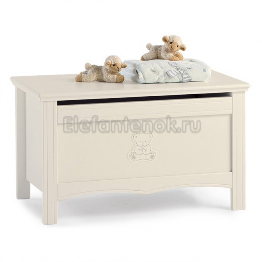 Ящик для игрушек Erbesi из коллекции Incanto идеально дополнит интерьер детской комнаты. Ящик имеет 4 устойчивых ножки, верхняя крышка поднимается, украшен изображением очаровательного медвежонка.
