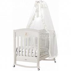 Классическая деревянная кроватка-качалка Feretti Enchant Dondolo изящного дизайна декорирована аппликациями в общем стиле комнаты, комплектуется колесиками и полозьями для качания. Подкроватный ящик решит вопрос с хранением постельного белья игрушек и прочих вещей. Мамы по достоинству оценят возможность регулировки высоты дна и опускания боковины: уложить или достать из кроватки новорожденного для вас не составит труда.