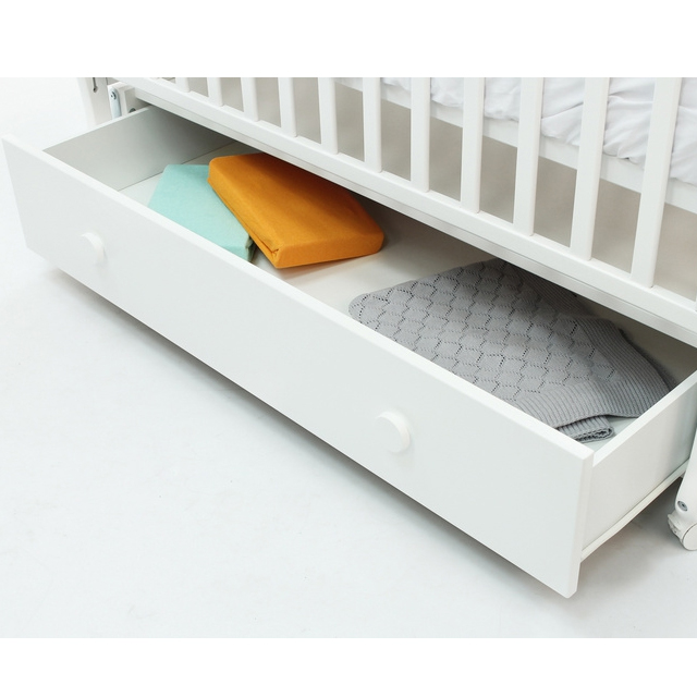 Элегантная деревянная кроватка Fiorellino Crown с продольным маятником декорирована оригинальной резьбой в виде королевской короны, имеет выдвижной подкроватный ящик и колесики для легкости передвижения мебели. Три уровня высоты подматрасника позволят вам не наклоняться низко при укладывании и доставании из кроватки новорожденного. Приятным дополнением является наличие на бортиках силиконовых накладок: они защитят малыша от случайного травмирования и помогут в период прорезывания зубов.