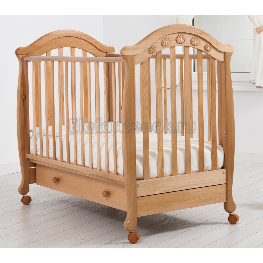 Детская кроватка Гандылян Джузеппе (с колесами) - это невероятно красивая и нежная кроватка для малыша. Кроватка соответствует самым строгим мировым стандартам – изготовлена из экологически чистых материалов и покрыта нетоксичными лаками. Для удобства в уходе за малышом в кроватке предусмотрен вместительный выдвижной ящик, в котором можно расположить все необходимые принадлежности, которые должны быть под рукой. Кроватку легко передвигать её по дому. Кроватку украшают деревянные аппликации в виде цветков со стразами Swarovsky.