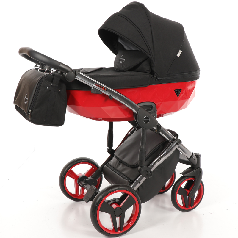 Имеющая цветную алюминиевую раму и колесные диски коляска 2 в 1 Junama Diamond Special восхищает своим дизайном и имеет полноценную люльку, низ которой декорирован алмазным узором. Гелевые колеса новейшего поколения и дополнительные амортизаторы на раме отлично сглаживают любые неровности.