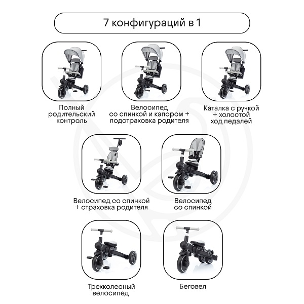 - Имеет 7 вариантов конфигурации в зависимости от потребностей ребенка.