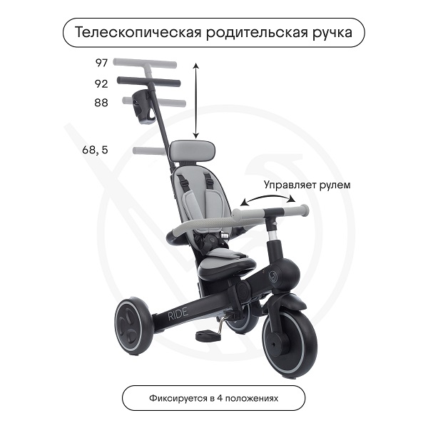Внимание: Родительская ручка управления используется ТОЛЬКО для управления велосипедом, она не предназначена для использования в качестве рычага для преодоления бордюров, ступенек и иных препятствий.