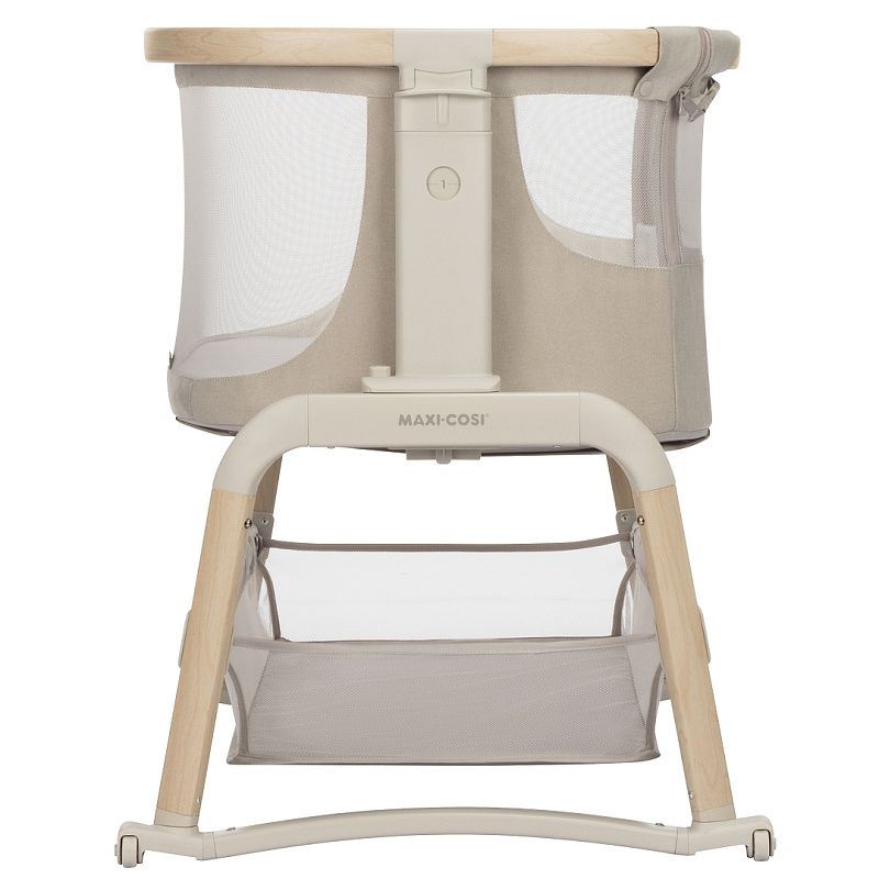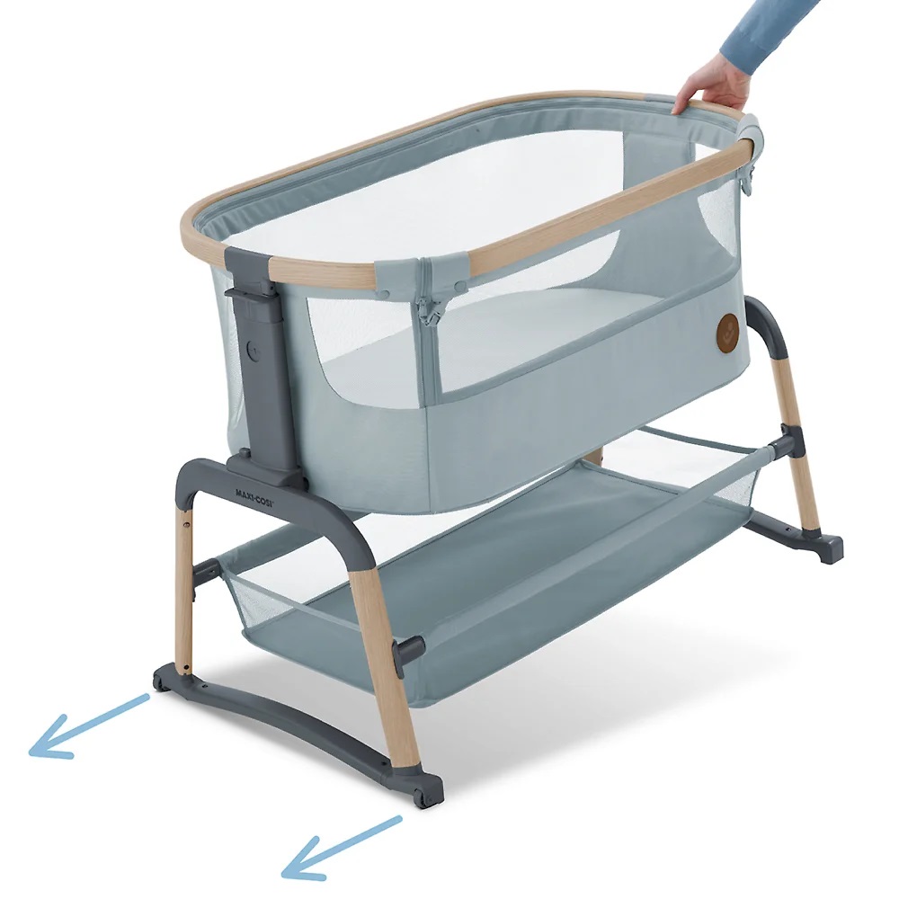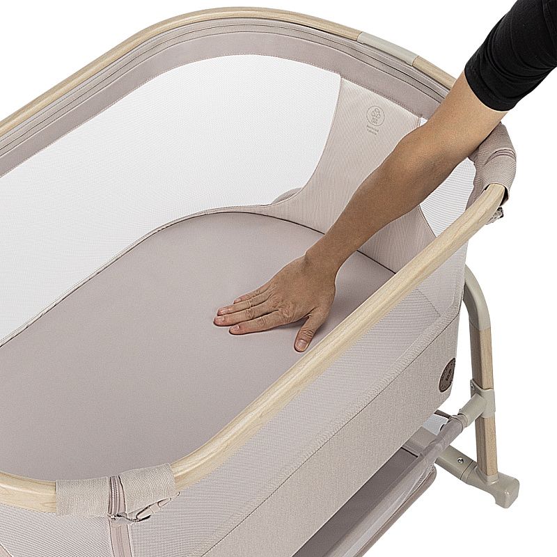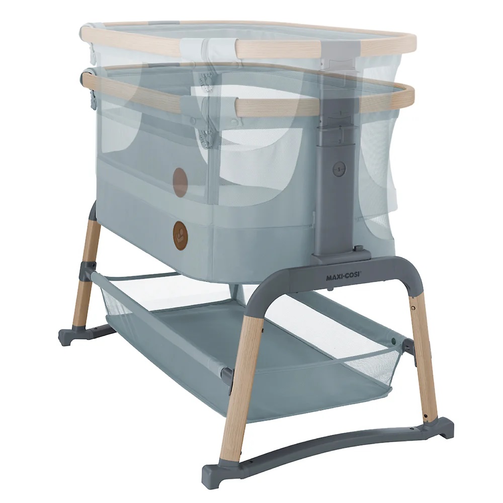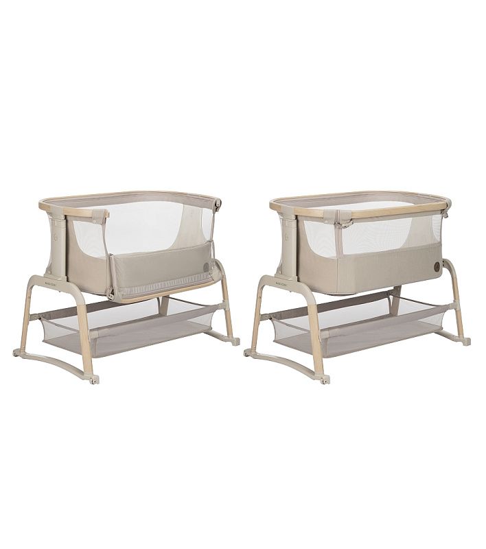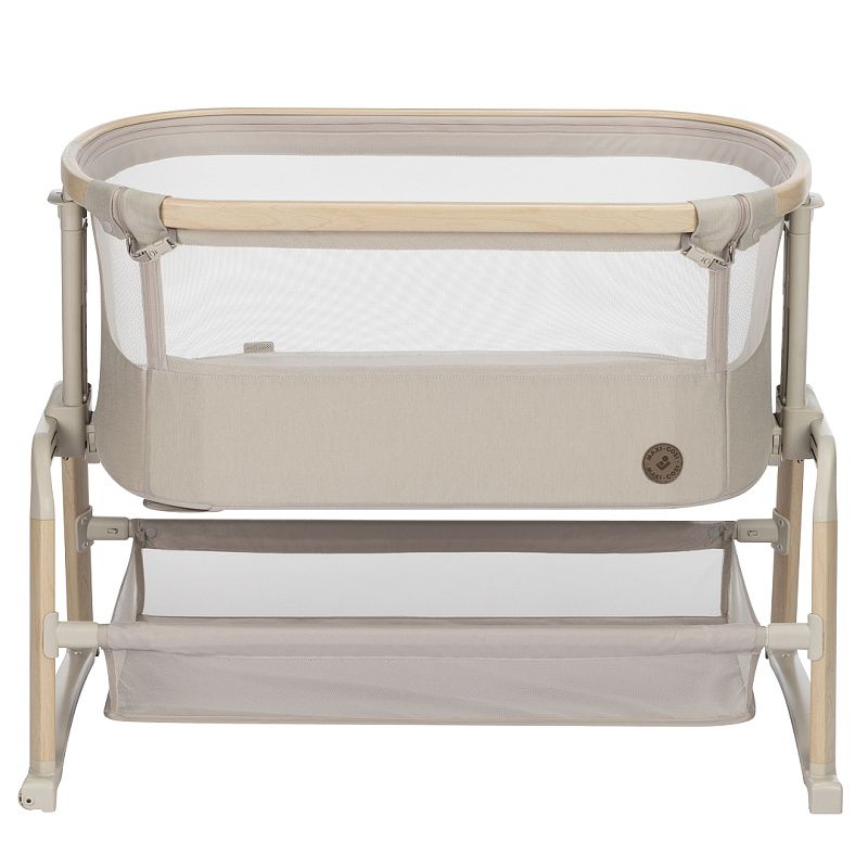 Maxi-Cosi Iora Air - многофункциональная кроватка-колыбель для новорождённых с сетчатыми бортиками для вентиляции, регулировкой высоты ( 5 положений), откидным бортиком, функцией качания, колёсами для перемещения, съёмной "дышащей" обивкой из переработанных тканей Eco Care, толстым матрасом и вместительной корзиной для вещей, которая легко складывается для транспортировки.