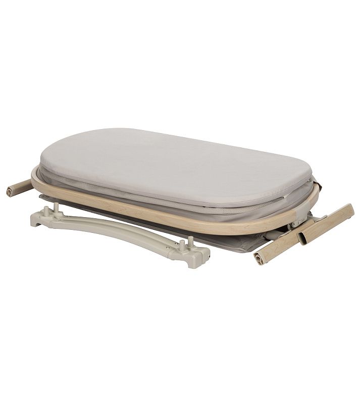 Конструкция включает пару поворотных дуг - благодаря им люльку можно плавно укачивать. Одна из дуг оснащена колёсами: с их помощью вы без труда передвинете колыбель по комнате.