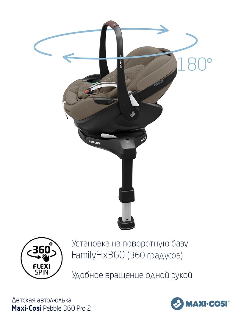 - Удобство фиксации. При использовании с базой FamilyFix 360 (приобретается отдельно) кресло поворачивается на 360°.