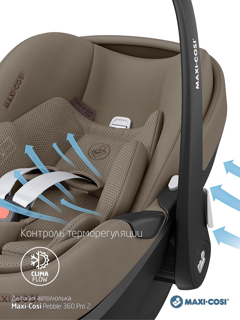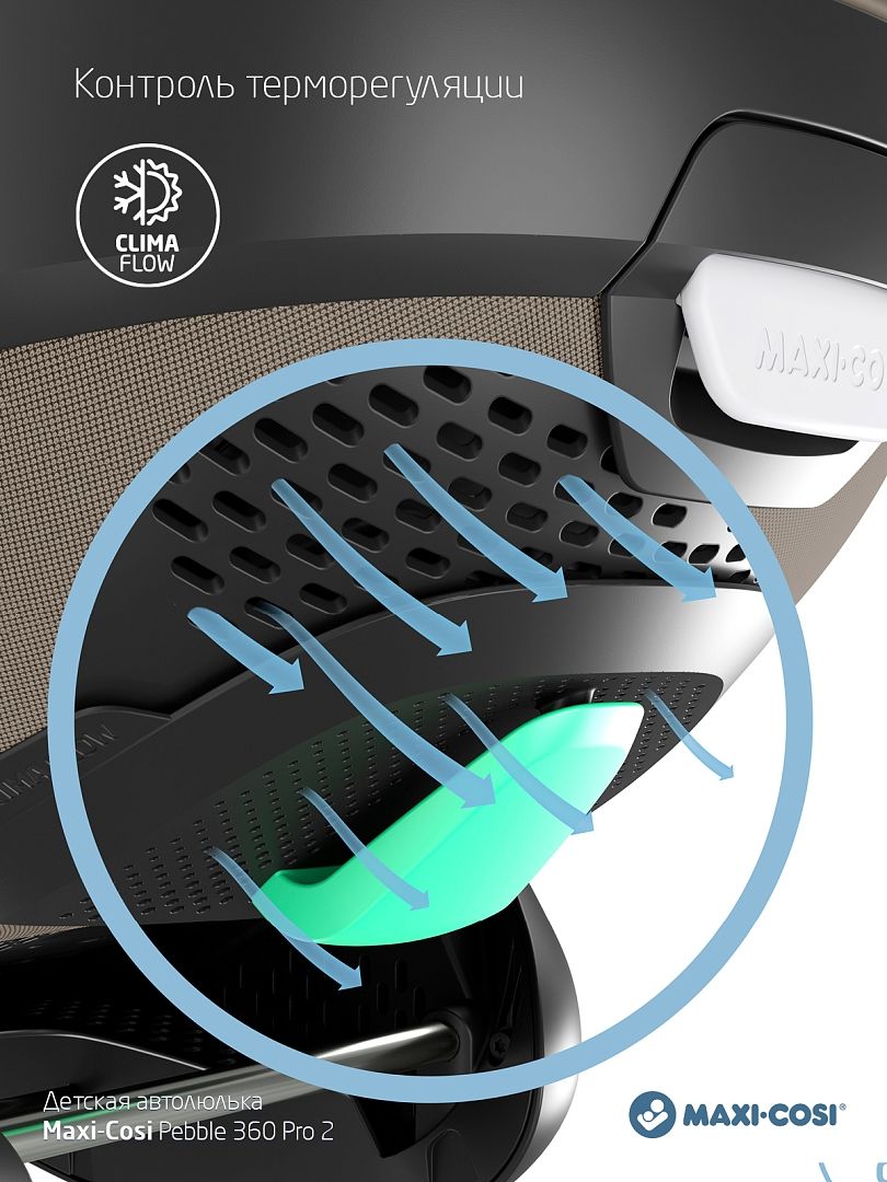 - Оптимальный микроклимат. Панели ClimaFlow обеспечивают непрерывную циркуляцию воздуха, поддерживая комфортную температуру тела ребёнка в любую погоду.