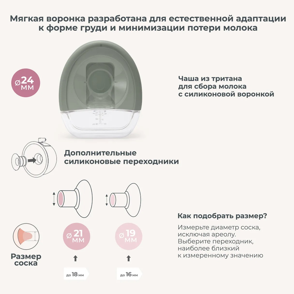 силиконовая чаша 24 мм вмещает 150 мл молока