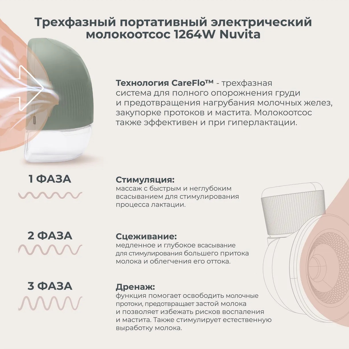 Nuvita 1264W Materno Flow, Электронные молокоотсосы