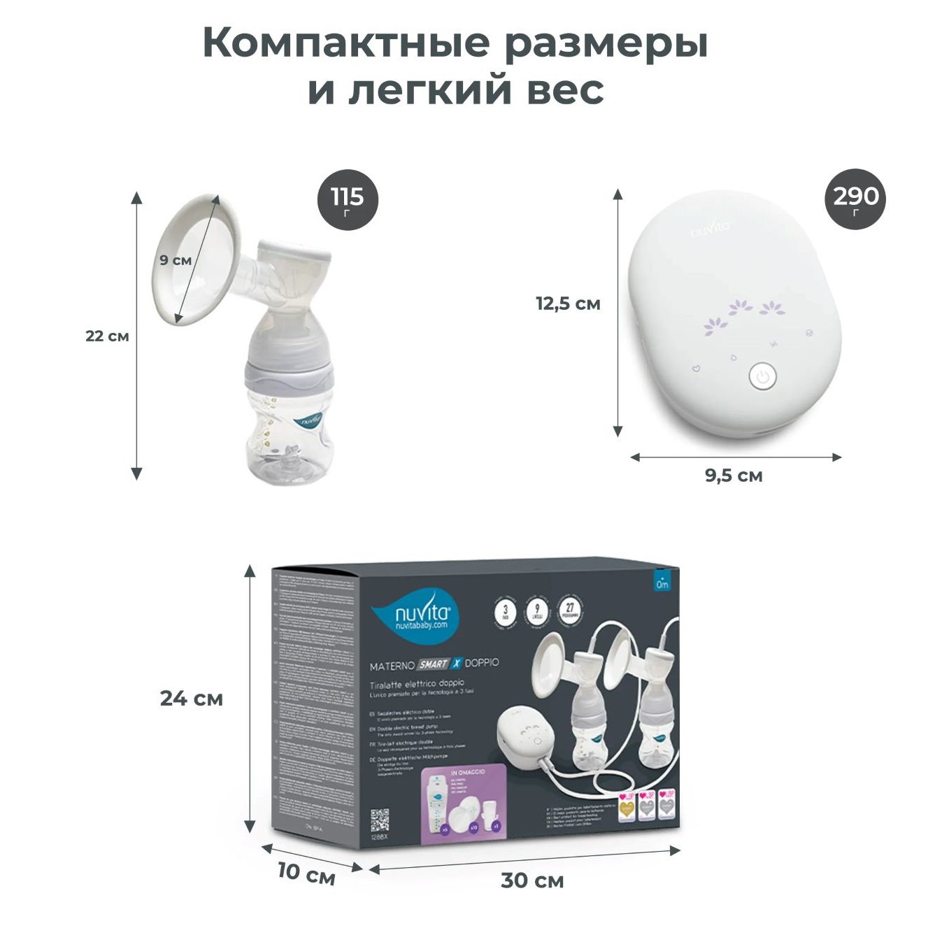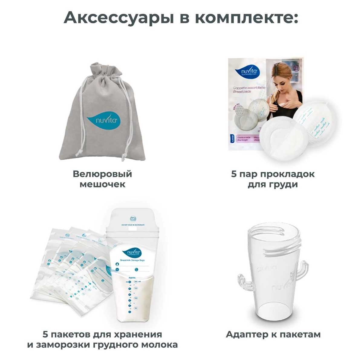 Комплектация электрического молокоотсоса Nuvita Materno 1288X Smart X
