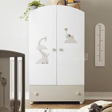 Двустворчатый шкаф Pali Savana нежного дизайна в стиле коллекции Savana вместительный и просторный, имеет выдвижной ящик внизу и прочные ножки. Шкаф вместит все вещи ребенка. белый основной цвет и аппликации на ящике придают мебели оригинальный внешний вид.
