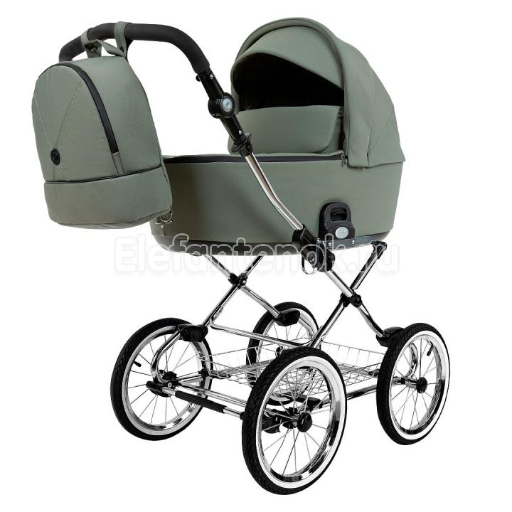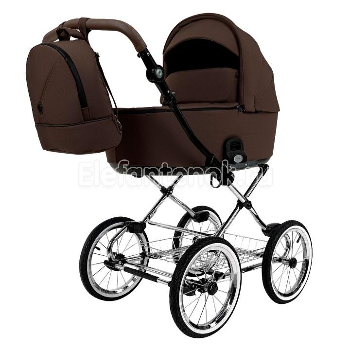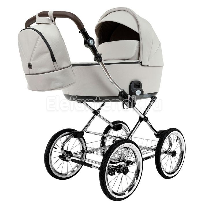 Roan Bass Next Classic d14 2 в 1 - шикарная коляска с очень просторной люлькой на классическом хромированном шасси с большими надувными колесами диаметром 35 см.