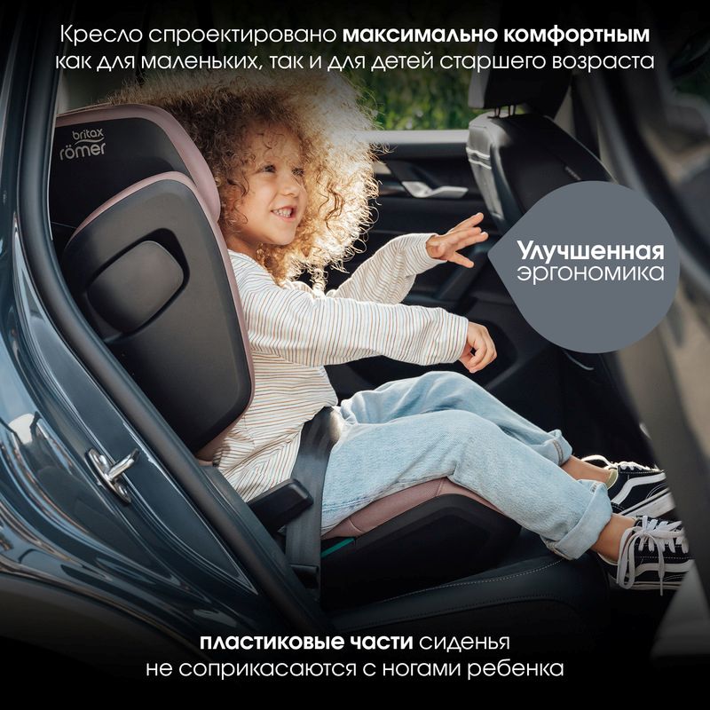 Britax Roemer Kidfix Pro M i-Size - модель для детей группы 2-3, сочетающая высокий уровень безопасности и комфорта: оно соответствует стандарту i-Size , произведено в Германии и оснащено системой крепления Isofix ( а также допускает фиксацию 3-точечным ремнём безопасности). Лёгкое ( 6,5 кг) и компактное ( 44 см в ширину) кресло позволяет разместить три единицы в ряд на заднем сиденье, а V-образный подголовник с 11 положениями регулируется по мере роста ребёнка и снижает риск травм шеи при боковом ударе