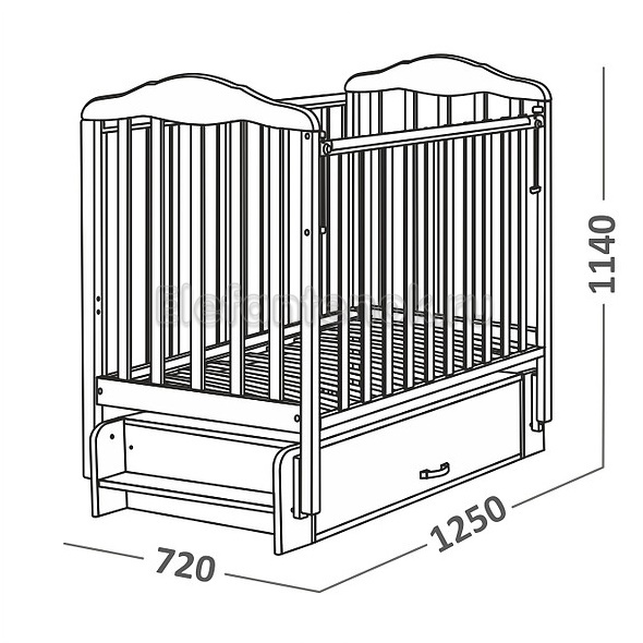 - Внешние габариты кроватки (Ш/Д/В): 72x125x114 см;