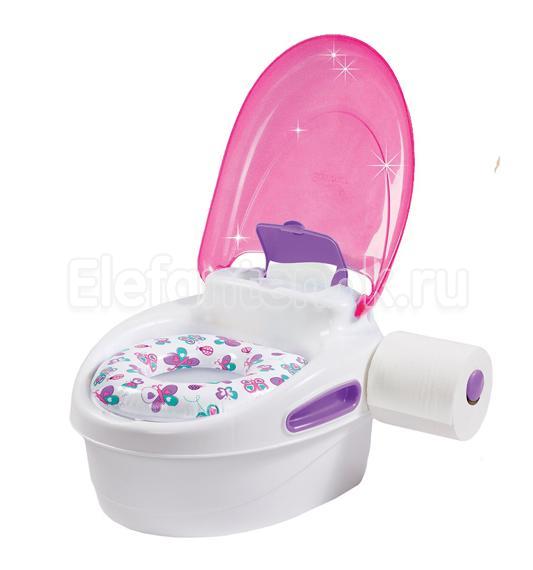 - Оснащен ручками для поддержания равновесия малыша, боксом для хранения влажных салфеток и держателем для туалетной бумаги.