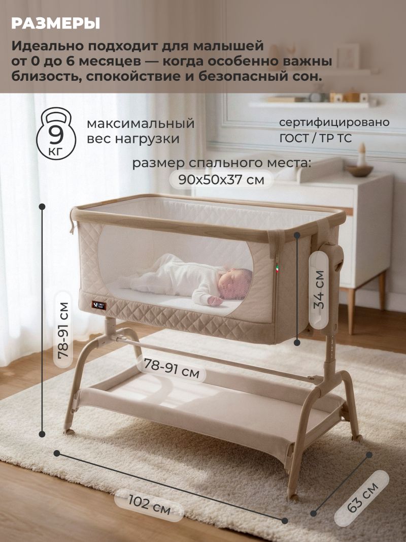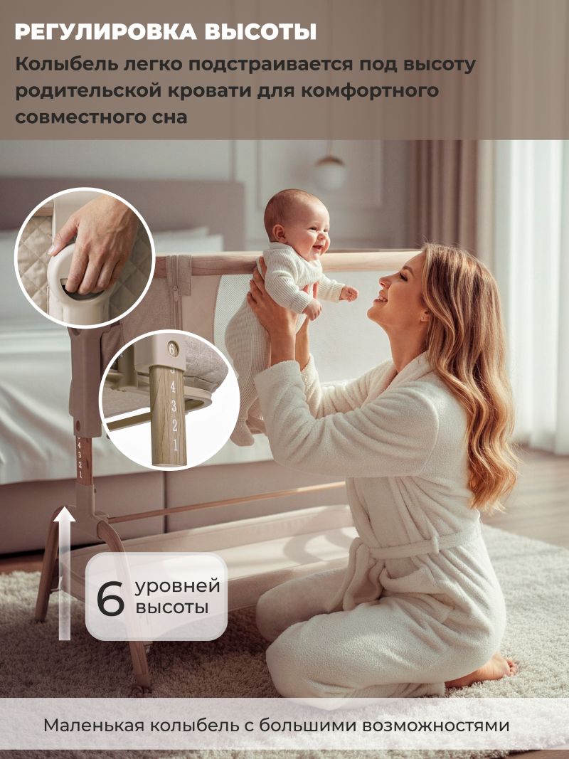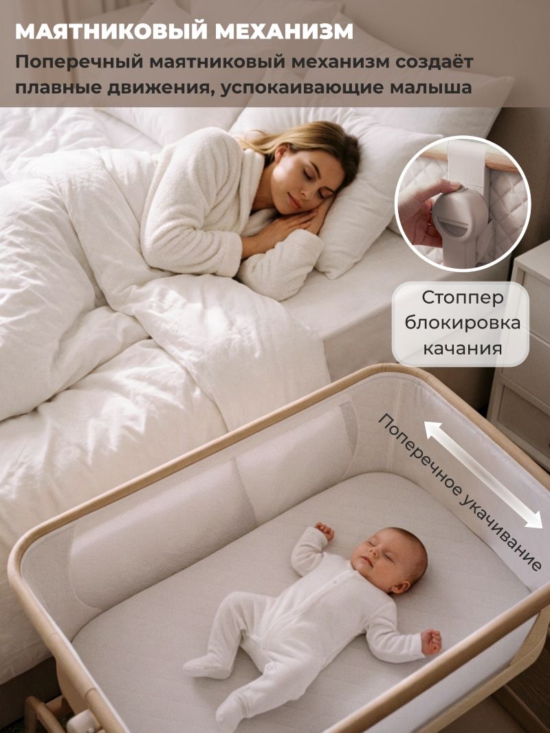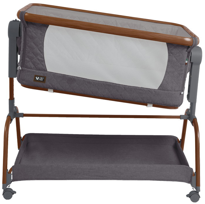 Sweet Baby Amici - колыбель рассчитанная на малышей с рождения до 7 месяцев ( до 9 кг), объединяет функционал и безопасность: она оснащена маятниковым механизмом для мягкого поперечного укачивания ( с возможностью блокировки), антирефлюксным наклоном дна, а также 6-уровневой настройкой высоты, позволяющей выровнять уровень колыбели с родительской кроватью для комфортного совместного сна.