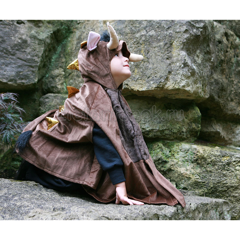 - костюм представляет собой плюшевый плащ с рожками, хвостиком, ушками и мягкими блестящими шипами.